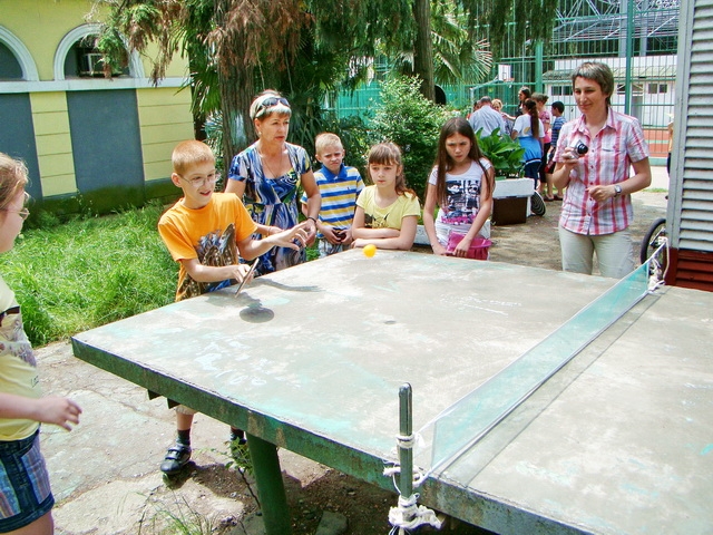 Сегодня в парке Ривьера управлением физкультуры и спорта города Сочи, поведены соревнования среди средних школ. В регламенте были заявлены следующие дисциплины. Стритбол, настольный теннис, дартс, армрестлинг. Необычность этих соревнований состояла в том, что среди участников состязались две команды, состоявшие из детей с ограниченными возможностями. В частности это спецкласс охраны зрения средней школы № 7, и реабилитационный центр помощи семье и детям «Солнышко». По мнению спортивных специалистов, такие смешанные состязания помогают детям с ограниченными возможностями быстро адаптироваться в окружающей их возрастной среде. Открыл соревнования заслуженный работник физической культуры и спорта России Терещенко Владимир Николаевич. Всего в состязаниях приняло участие порядка 100 человек, но я хотел бы остановится на спецклассе школы № 7 и реабилитационном центре «Солнышко», это был настоящий праздник для этих детей.
