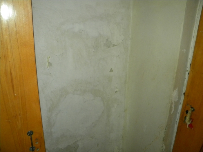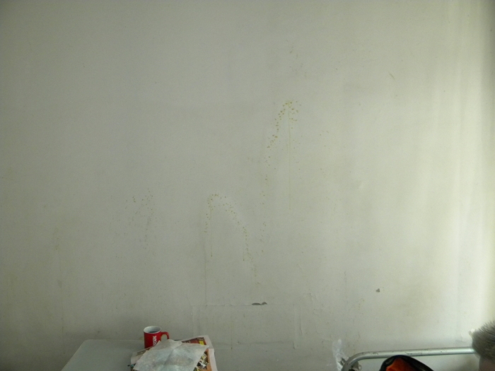 на стенах не понятные подтёки, либо хирург практикант пытался вскрыть тело, либо пьяная молодёжь пила колу, в общем стены явно не мылись очень давно