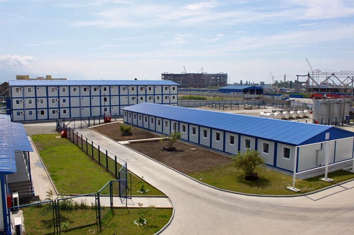 Высокими темпами характеризуется ситуация и на возведении гостиницы. Два первых этажа в бетоне, близки к завершению работы по заливке перекрытия между вторым и третьим этажами. В контурах каркаса уже просматривается волнообразные линии будущего отеля для журналистов. По словам руководителей генподрядного строительного предприятия, до конца текущего года основные конструктивные объемы сооружений будут выполнены.