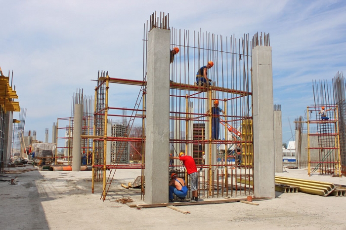 — Не так давно мы прошли важный производственный и психологический рубеж – завершили фундаментную плиту медиацентра. Она метровой толщины, при ее устройстве было уложено 107 тысяч кубометров бетона. Площадь застройки огромная, поэтому на каждом участке стройки — свой ритм, своя стадия развития. Большая часть колонн и стен первого этажа — 95 процентов — готова. Это позволяет активными темпами бетонировать перекрытие первого этажа – выполнена треть от общего объема.