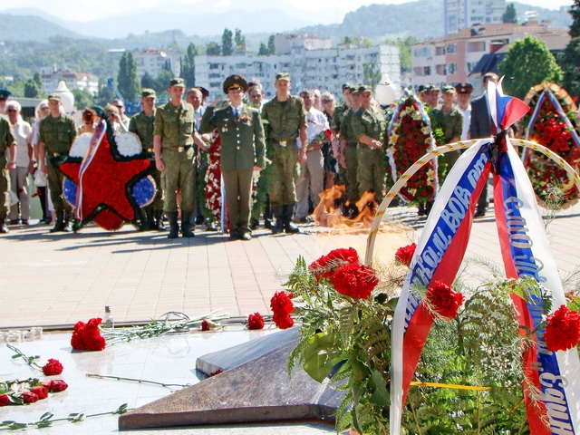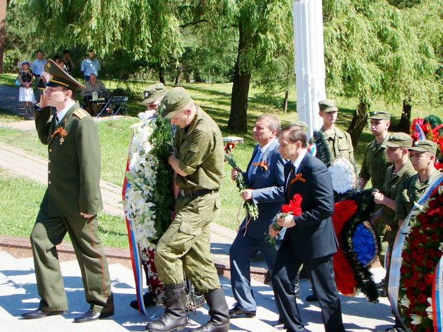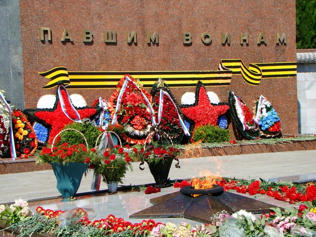 Сегодня на мемориале памяти воинам освободителям, отмечали день скорби. Ветераны и жители города возложили цветы и венки к вечному огню. На площади играла музыка, и звучали песни военных лет. Колона в сопровождении военных торжественно поднималась к памятнику павшим воинам!