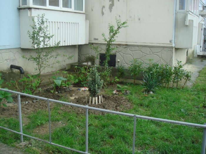 Мне удалось понудить соседа и парковку под окнами он ликвидировал, засадив все цветами и клубникой.