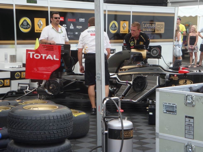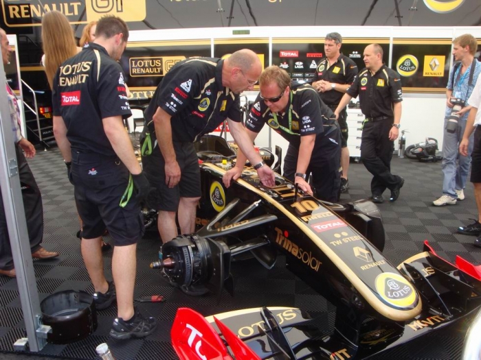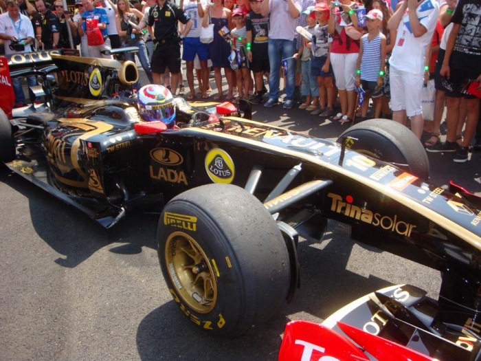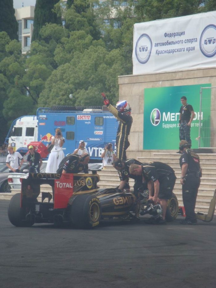 Уже выложили видео исполнения Гимна России командой Формулы-1 Рено. Под катом варианта, так сказать, вблизи. Я очень удачно подошёл в этот момент к машине.