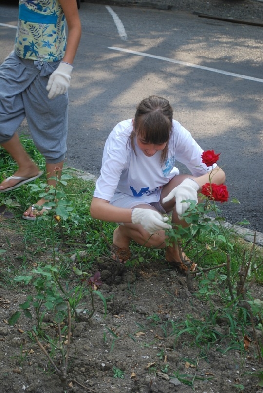 Половину роз порастащили:)))) В сентябре еще досадим!!! И мы за ними постоянно ухаживаем: и подрезаем, и подсыпаем удобрения, и поливаем:)))) Светлячок права — розы тяжелы в уходе:))) Но ничего, думаю, через год — это будет настоящая улица Роз. Просили жителей города взять шефство над клумбами, но никто не хочет просто даже последить за тем, чтобы не выкапывали.