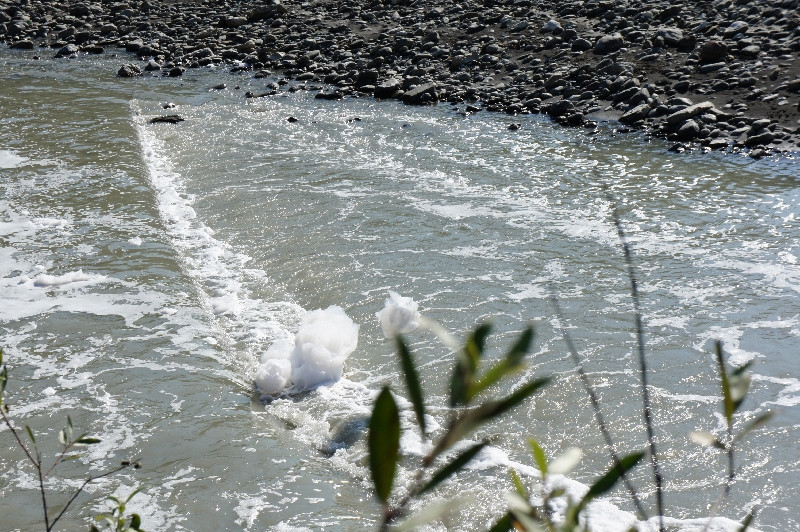 В негромкий ужас повергает звук. Вы тоже можете его услышать простым незамысловатым образом. Набрав в емкость по типу таза воды, добавить стирального порошка изрядно, хорошенько взбить пену и бросить какие либо вещи вроде носков. И вот это шипение лопающихся пузырьков заполняет все вокруг. Шипит вся река:
