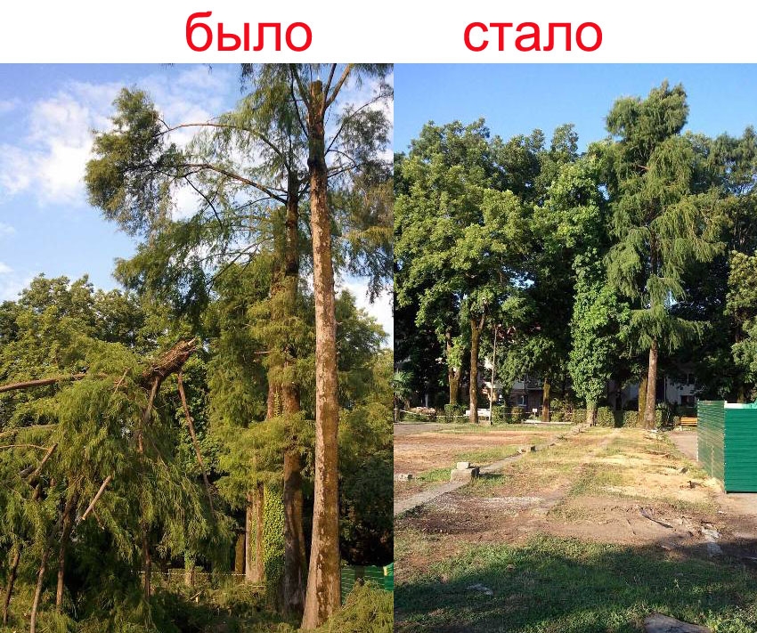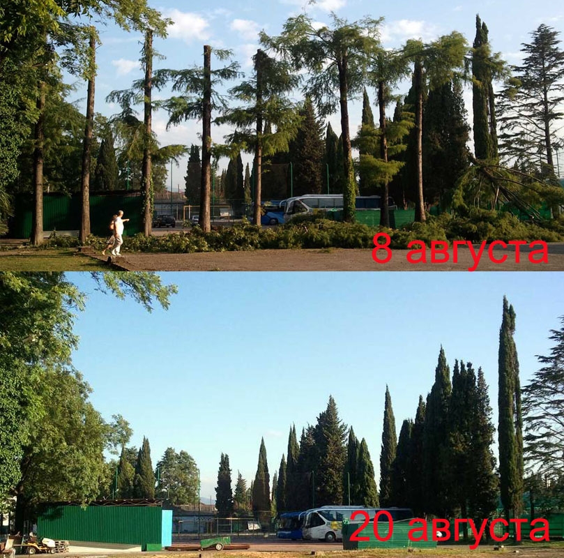 А можно было фотки факсом послать, заявить о начале, так называемого кронирования, гражданам сообщить, пусть бы они телефоны горячей линии главы Адлерского районы и др. служб города, в т.ч. Главы города «обрывали». Такие деревья не кронируют, только ветки сухие обрезают.