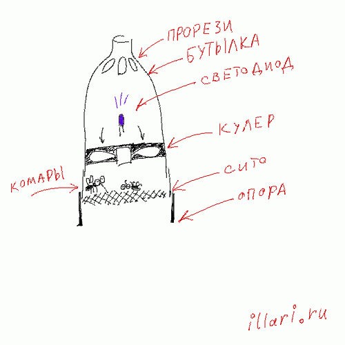 Как-то было жуткое нашествие — при перекрытых вентиляции и окнах, отсутствии подтёков — более 50-ти комаров в квартире. Самоделка и китайская ловушка себя показали отлично.