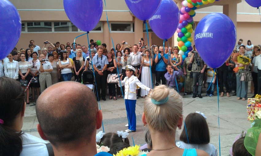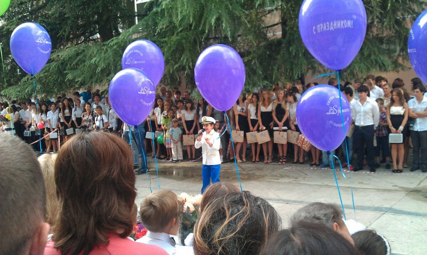 Когда то и я 10 лет подряд в 1-е сентября вот так стоял на линейке. Ни чего не изменилось, все тот же коммунистический режим только в профиль… Флаги едросов вместо красного и вот это: «спасибо товарищу „Пупкину“ и партии за установку видеокамер и 79 наборов школьной одежды» или «Товарисч директор линейка построена. Директор: считаю торжественную линейку открытой». Детей немножко жалко час двадцать простоять на площади. Даже у меня ноги затекли. Ребята выступлениями порадовали. Ну а потом дружно, не разбегаясь в разные стороны, пошли на первый урок в первый день учебного года…