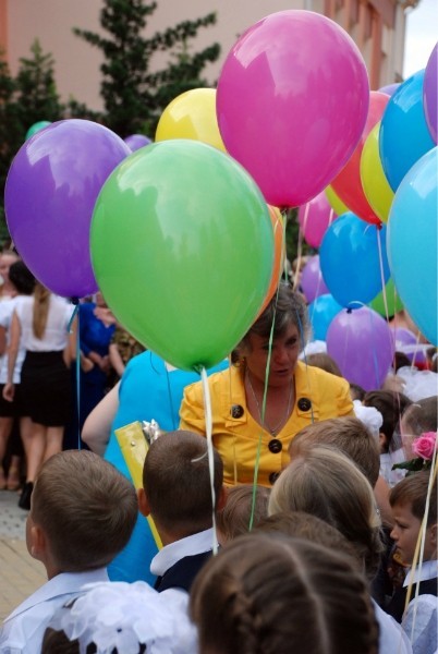 сразу оговорюсь… родителей первоклашек шустро прогнали с тех мест, откуда было бы удобно снимать на фото/видео камеры… поэтому мы, родители, оказались за спинами наших первоклашек… всё бы здорово, но в руках у деток были воздушные шарики))) в итоге, на снимках больше всего оказалось именно их))
