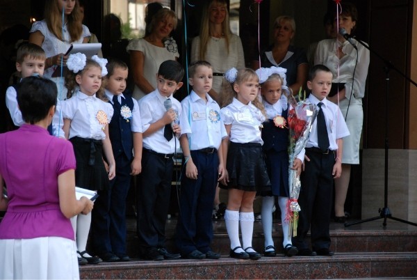 были торжественные речи и от гостей… был депутат Уваров (вроде)… представители администрации города и УНО… депутаты подарили всем первым классам (а всего их в нашей школе пять) по большому медведю… а юных учеников потом ожидали дополнительные сюрпризы…