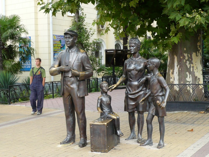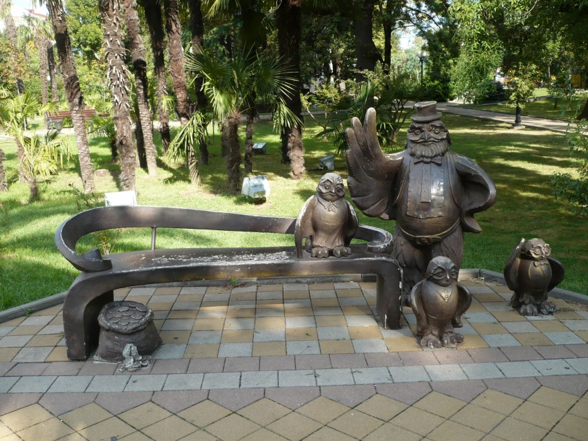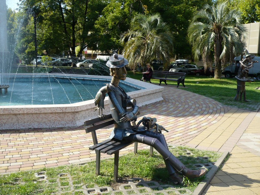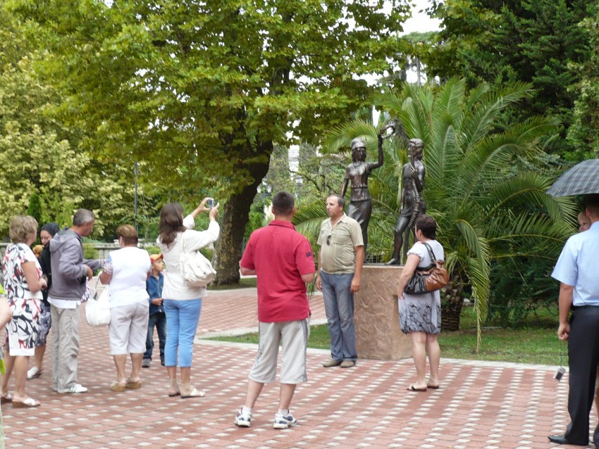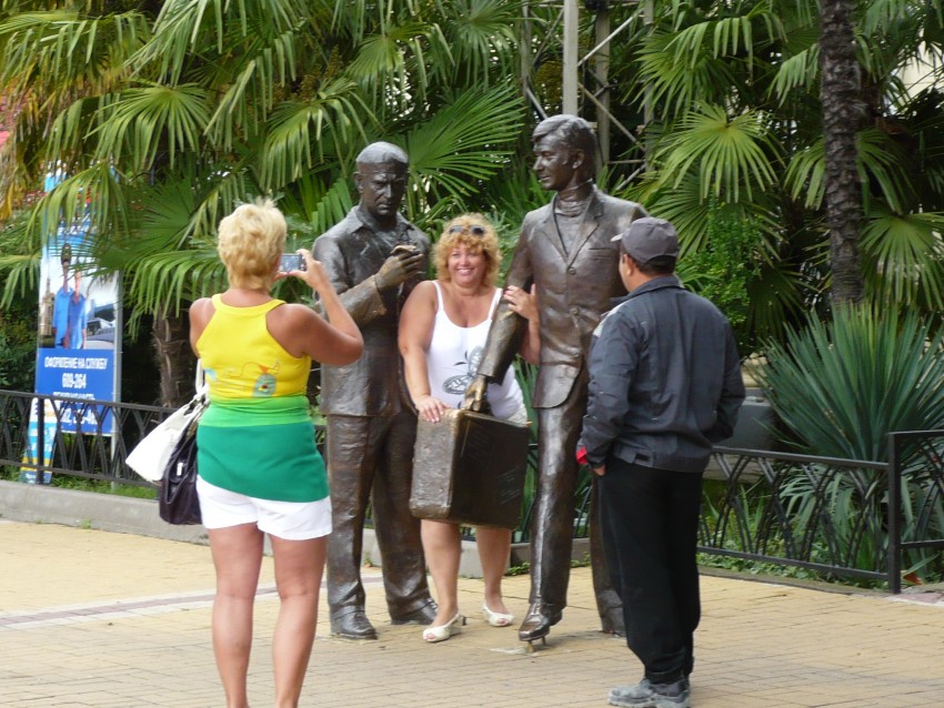 У недавно установленных городских скульптур персонажей фильма «Бриллиантовая рука», наибольшей популярностью у отдыхающих пользуется бесспорно А.Миронов…