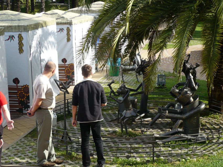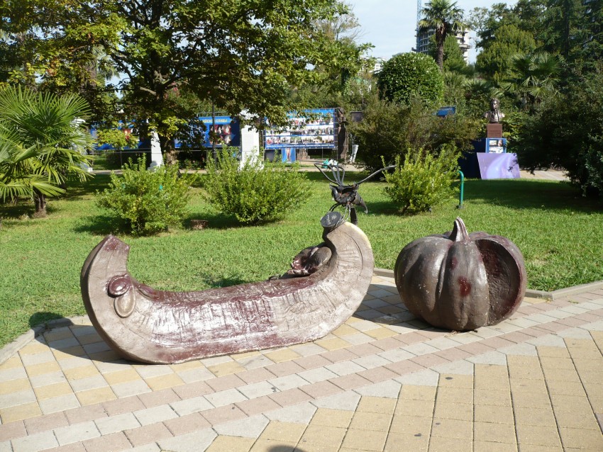 Тут и хамелеон в наличии и попугай… Только фигура представляет собой утомлённого солнцем уличного фотографа… Кстати, с этой фигурой практически все отдыхающие фотографируются…