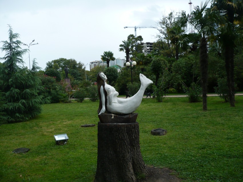 Возле вокзала постояла у фонтана (скульптуры которого уже нуждаются в ремонте)