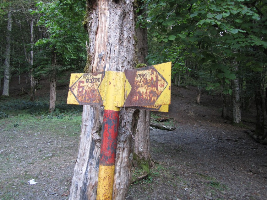 Согревшись утренними лучами стали собираться обратно. В 9:00 вышли. По дороге нашли куст черники, до чего же она вкусная! У столба нужно было поворачивать вправо, но видимо засмотревшись на скалистый массив мы опять пошли не туда. А именно на перевал Черкесский. Через два часа пути чуть ниже увидели хорошо набитую тропу, по которой и возврашаются с Фишта. Позже нам сказали, что до перевала мы недошли самую малость. К развилке мы спустились к часу дня. И нам опять повезло с машиной. И уже в 16:20 мы были в Дагомысе. Конечно, незнание маршрута портило настроение, мы выбивались из графика, однако все затмила красота загадочного озера Хуко, гостеприимство и приветливость встретившихся нам людей!