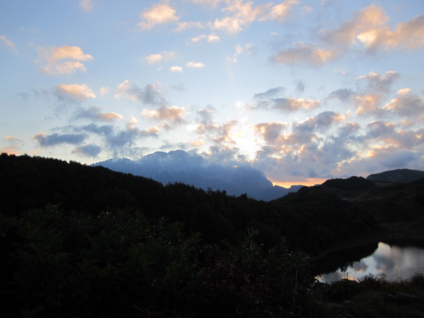 От указателя подъем мы начали в 15:00. Когда мы вышли на альпийские луга спустился густой туман, тропу было очень плохо видно, но нам повезло и через 4 часа мы добрались до озера.