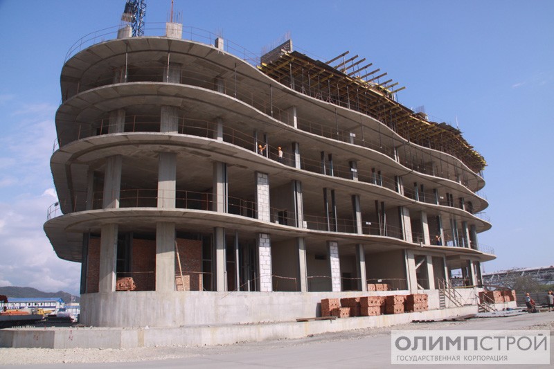 Главная олимпийская информационная площадка расположена рядом с Олимпийским парком и включает пресс-центр, телецентр, а также антенное поле. В настоящее время строители монтируют второй этаж. Уже установлено 50 процентов колонн. В ста метрах от медиацентра строится комплекс сооружений для размещения журналистов с уровнем сервисного обслуживания 3 звезды на 600 мест и на 4200 номеров. Четыре из восьми предусмотренных проектом этажей гостиницы уже возведены. На пятом более чем наполовину выполнен монтаж перекрытий. Согласно проекту восьмиэтажная гостиница одной стороной примыкает к медиакомплексу, другой — обращена в сторону моря и Олимпийского парка. Жилые гостиничные номера занимают с 3 по 8 этажи, на втором расположены бизнес-центр и конференц-зал.