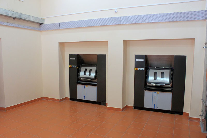 В числе хозяйственных построек – автономная система электроснабжения, котельная, специальные очистные сооружения, пищеблок, начиненный разнообразной кухонной техникой, отдельными цехами для обработки и приготовления продуктов; прачечная с барьерными машинами, позволяющими разделять потоки белья.