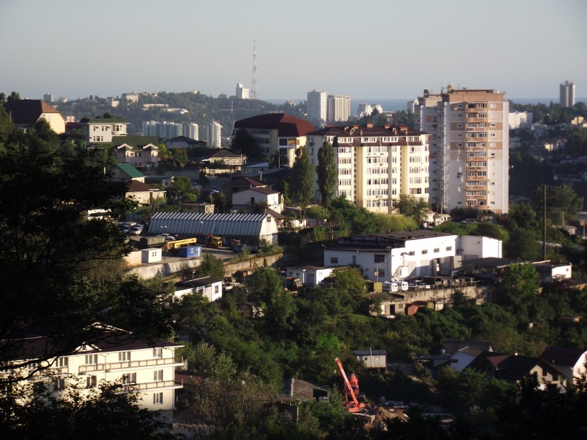 Бетонная гладь мостового перехода соединила два берега реки Сочи