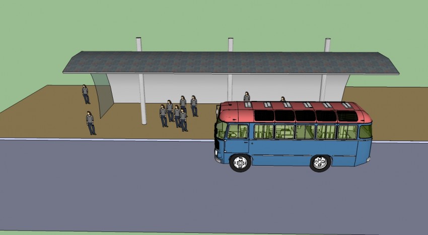 Остановка должна защищать от осенне-зимне-весенних холодных ветров и проливных дождей, а также и от палящего летнего солнца. И быть гораздо просторней, чем показаные выше туалетные кабинки с разукрашеными крышами