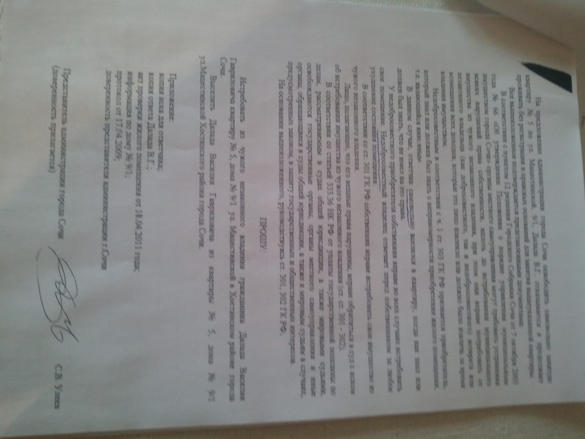 — Да, Надечка, видимо, власть поменялась… — угощает меня холодцом в пока еще своей квартире в социальном доме на улице Мацеста 9/1 Василий Гаврилович Далада. – Вот один мэр дал нам 500 рублей прибавки к пенсии и квартиры. Другой — прибавку забрал, а теперь из квартиры выселяет. Вот ты почитай иск в суд: пишут, что я ее самовольно захватил!