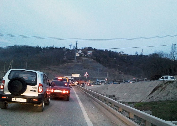 Уже две недели, как на участке федеральной трассы от Мамайского перевала, спуск с него в сторону Сочи, некие уроды считающие себя видимо дорожными строителями сняли верхний слой асфальта, сделав поперёк проезжей части(на всю ширину или на одну полосу) 10!!! полос шириной около полуметра и глубиной по 5-7 см!!!
