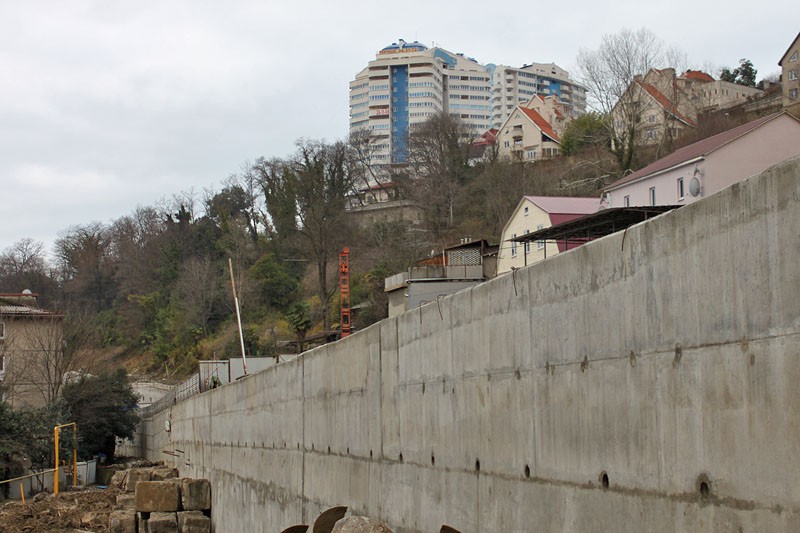 Чтобы реализовать проект в заданных параметрах, предусмотрено проложить дорогу в своеобразном русле из мощных подпорных стен. Их можно считать наиболее крупными конструктивными элементами олимпийской дороги. В уходящем году на их возведение, в основном, и были направлены усилия генподрядного ООО «Мостоннельдорстрой».