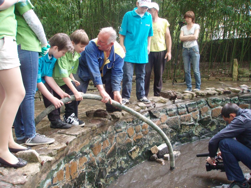 Пока машина водоканала делала очередную ходку за водой мы все, слегка подустав, решили сделать небольшой перерыв, с перекусом свежей выпечкой и напитками. Как вдруг, к нашему всеобщему удивлению, появился директор водоканала А. Б. Толмачев. Далее случилось интересное. ))) Алексей Борисович предложил самым смелым на деле проверить работу спец. оборудования. Никто из молодежи никогда не видел работу такой техники, а тут еще и предложили поучаствовать в данном процессе. Просто восторг!