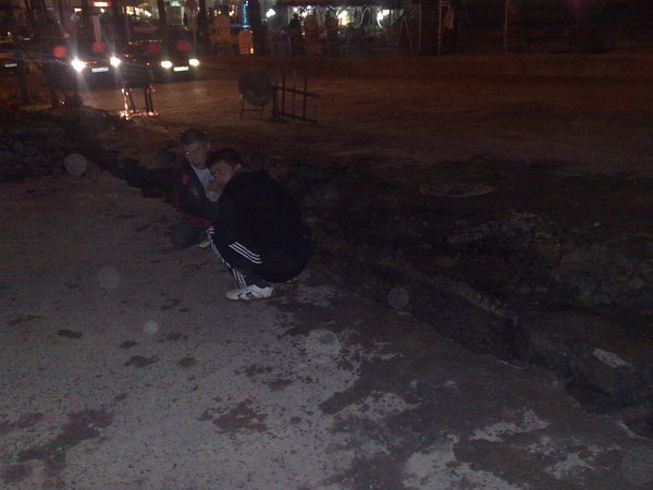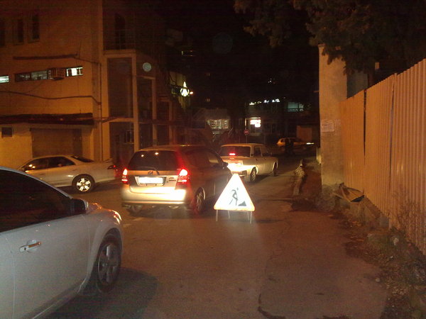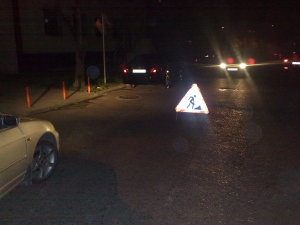 Перед самой траншеей сидели рабочие и работали знаками«Направление объезда»!