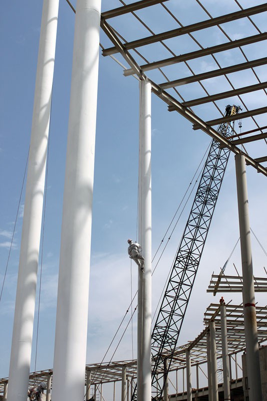 Сейчас уже с уверенностью можно говорить о приближении решающего этапа строительства одного из крупнейших в прибрежном кластере объектов. И на гостинице, и на пресс-телецентре основной объем строительно-монтажных работ давно выполнен. Фоторепортаж, подготовленный сотрудниками пресс-службы департамента Краснодарского края по реализации полномочий при подготовке зимних Олимпийских игр 2014 года, свидетельствует о наступившей активной фазе отделочных работ. Здание пресс-телецентра стало обретать реальные физические формы после того, как его начали одевать в белые облицовочные панели по всему периметру. Началась покраска металлических колонн. Монтаж конструкций и ажурных сплетений покрытия завершен, начались кровельные работы. Внутри строения, в лабиринтах которого работают люди и различная техника, повсюду монтируются вентиляционные короба, компоненты других систем жизнеобеспечения. В некоторых помещениях главными действующими лицами уже становятся отделочники.