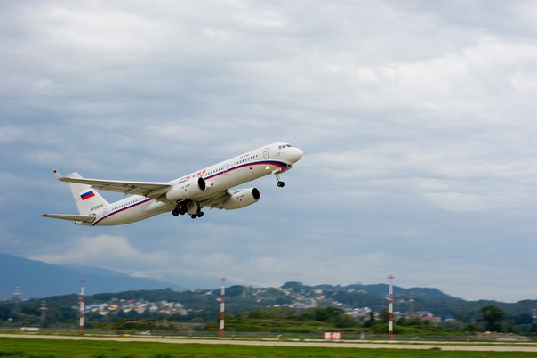 После съёмки самолётов в статике нам дали возможность попробовать свои силы во время взлёта и посадки бортов. Среди машин, покидающих аэропорт Сочи, был и Ту-214 специального лётного отряда «Россия».