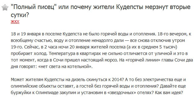 а кудепста, хоста, верхняя николаевка и половина адлера что, не люди тут живут или чем-то хуже вас?