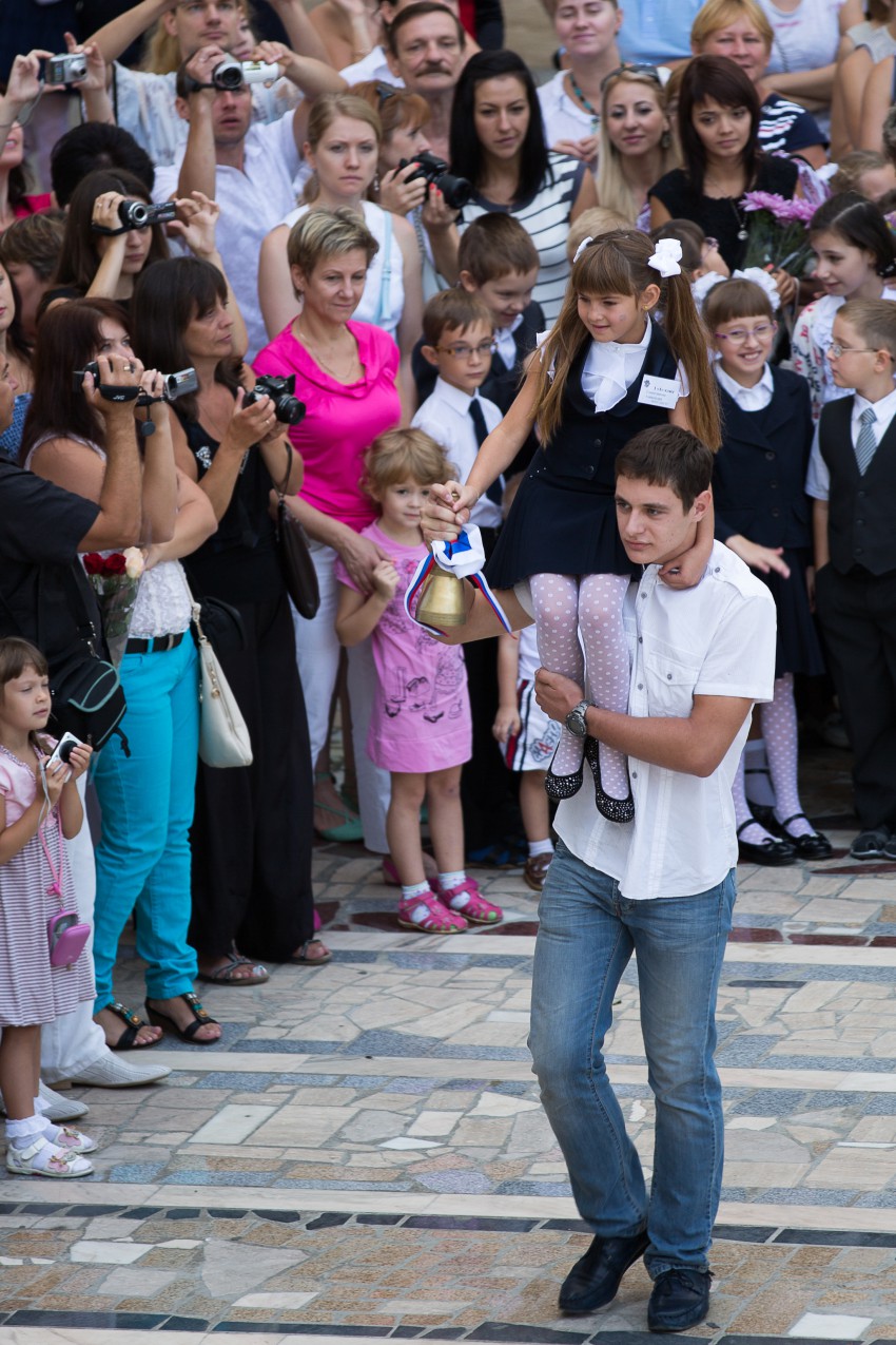 Я в 1 класс пошла в 7 школе :) После линейки заболела на 2 недели. Как же это было давно! Тогда еще были десятиклассники :) У меня были большие красные георгины.