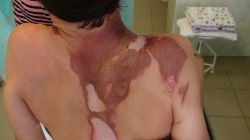 Так как специалистов по ожогам в нашей детской больнице нет, ведет его хирург. Он сразу сказал, что будьте готовы к пересадке кожи и сегодня, после очередной перевязки, этот диагноз пока в силе (белые пятна, как понял, это регенерирующий слой кожи уничтожен, клеток не осталось).