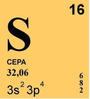 Ну, раз упомянул Мацесту, то следующий элемент – Сера (S), которая в соединении с Водородом образует Сероводород (Н2S) – основное действующее вещество термальных сероводородных мацестинских вод.