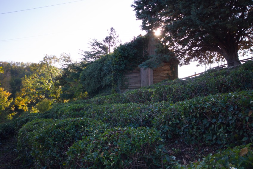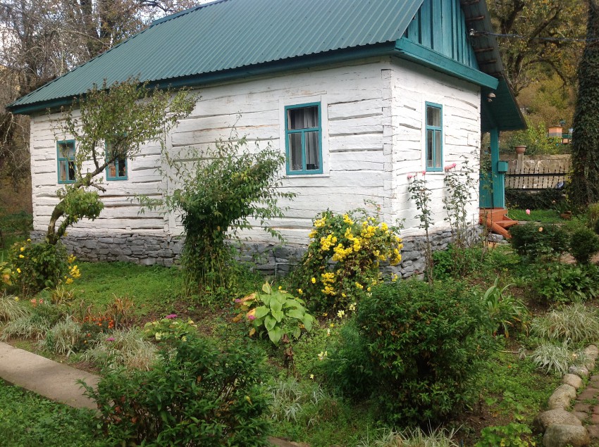 Ехать до нижнего Солоха до развилки: налево к реке (турбаза), прямо база отдыха Шахе, направо нам и надо. Едем прямо до резкого поворота налево (На право будет переход в монастырь) и едем по дороге. Причем не спеша, дорога узкая. Разъехаться большим машинам трудно. С левой стороны будет и искомая «усадьба». Не знаю почему её назвали усадьбой, но на самом деле очень старая но отреставрированная изба. Плантация чая. Могила основателя «Самого северного чая» Иуды Антоновича Кошмана.