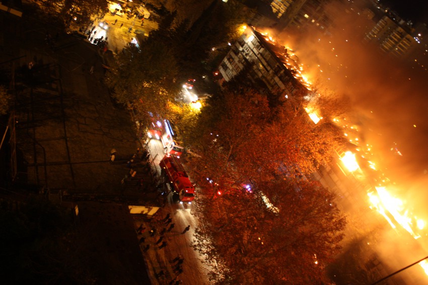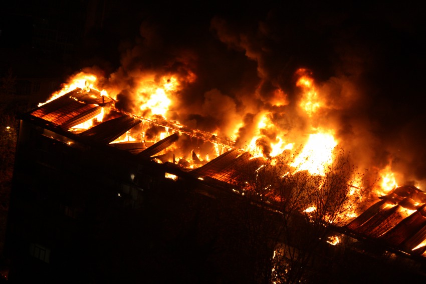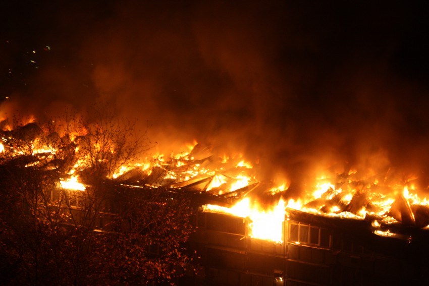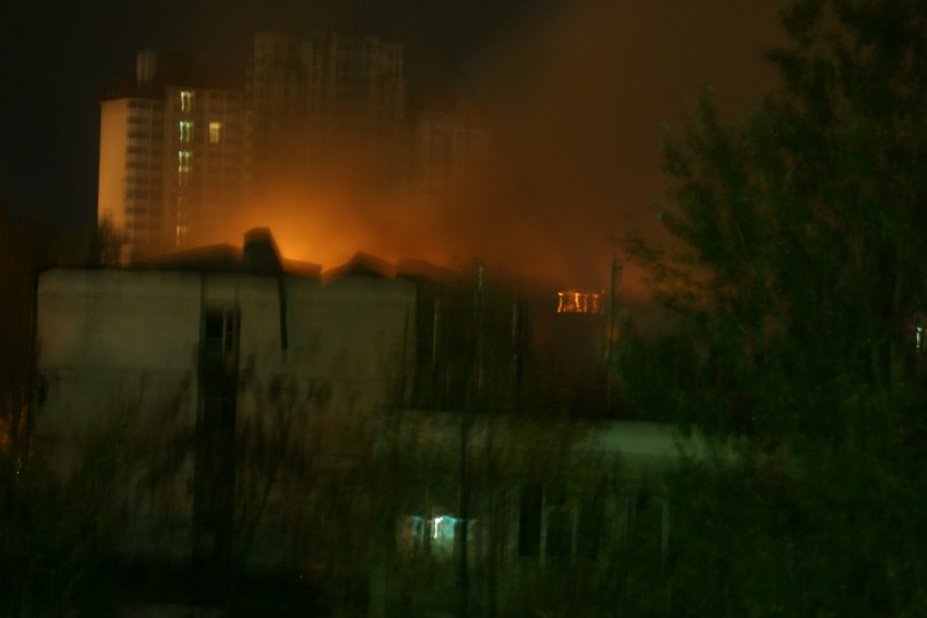 Пожар начался на 5 этаже со стороны рынка, живу на первом этаже этой общаги, в 4:10 выбежал на улицу набрал 911, они уже были в курсе. В это время крыша начала гореть. Пожарники даже подъехать не смогли с той стороны, Аптека мешала.