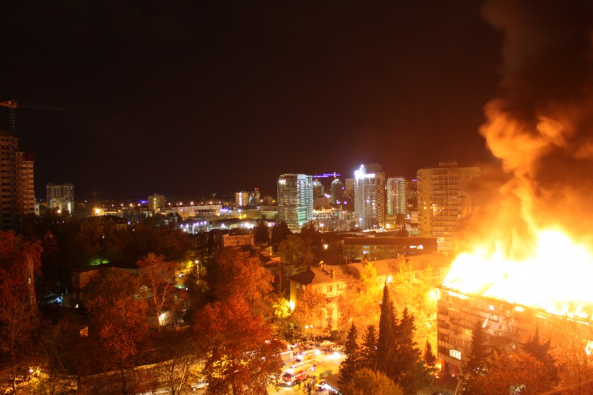 Цитата: «В настоящее время оперативный штаб, координирующий работу спасателей по тушению пожара в пятиэтажном жилом доме в Сочи, создан в Южном региональном центре МЧС. Решение о развертывании штаба было принято в связи с тем, что распространение огня в здании продолжается. Он перекинулся на другие квартиры. Прибывший на место происшествия мэр Сочи Анатолий Пахомов заявил эвакуированным жильцам, что городские власти окажут им всю необходимую помощь».