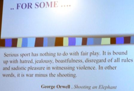 Профессиональный спорт — это не честная игра. Профессиональный спорт пропитан ненавистью, завистью, бахвальством, пренебрежением ко всем существующим правилам и садистическим удовольствием свидетельствовать насилие. Другими словами, это война минус выстрелы.