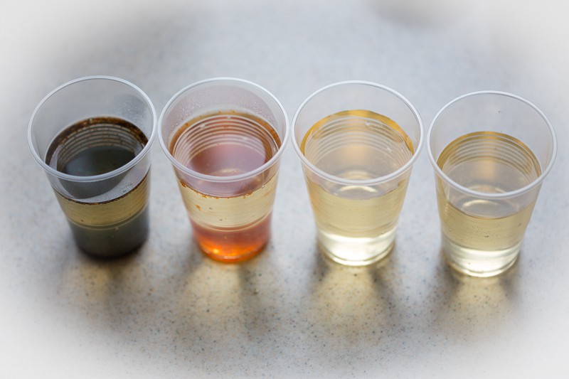 Слева направо: кулер, водопроводная, существующий фильтр, предлагаемый фильтр. Примеси визуализировались посредством электролиза алюминия. Кулер алармичен, сомнения были и раньше. Получается, что из-под крана пить безопаснее. Хотя продавцы бутилированной воды для кулеров пишут всякое, срач ещё тот. Но мы ведь и не с дистиллированной сравнивали, опять же.