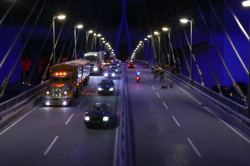 Давеча, проездом из Раздольного в Сергей-Поле заехали мы с сыном в Гамбург, посмотреть «миниатюрную страну чудес». Целый мир в масштабе 1:87 занимает два этажа большого здания. 215 тысяч «человек» управляют транспортом, изготавливают цемент, шоколад, добывают руду, а также грабят банки, дружат организмами, пьянствуют пиво и нарушают беспорядки. Всё ездит, плавает, летает, светится. Безобразием управляют 64 сервера и штук 6 дойч-админов разной степени волосатости. Отдельными кнопками можно инициировать события типа рыцарских турниров, байк-шоу, признаний в любви, полётов НЛО и сотню других.