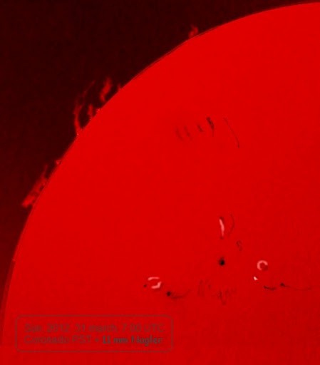 RSS свернуть / развернутьЯсным солнечным днем можно наблюдать за протуберанцами. За тем как они срываются с поверхности солнца, превращаясь в фонтаны и потом опять падают на него. Великолепно видна зернистость поверхности. Очень детально можно рассмотреть солнечные пятна.