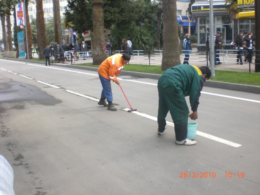 Наконец в Сочи применили нано технологии в дорожных работах, в частности теперь дорожную разметку наносят распыляя из специального устройства микророботов.