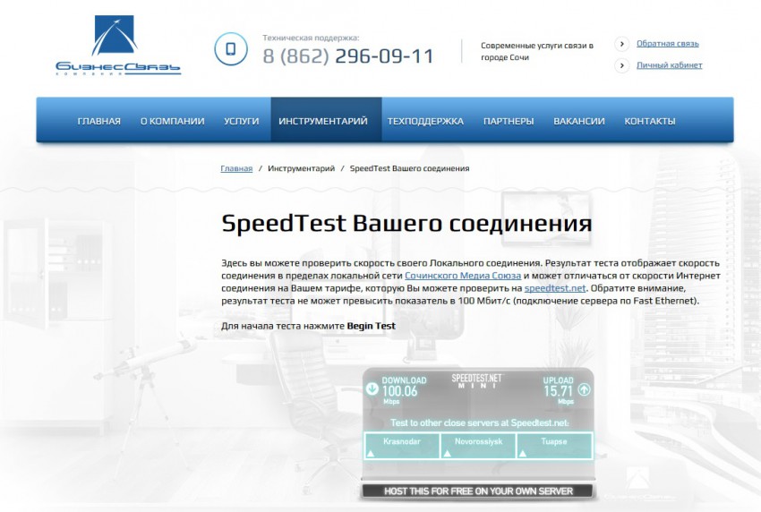 Для проверки скорости проследуйте пожалуйста по этой ссылке www.bisv.ru/speedtest/, там нажмите «BEGIN TEST» и обратите внимание на показатель «DOWNLOAD». Он выглядит вот так: