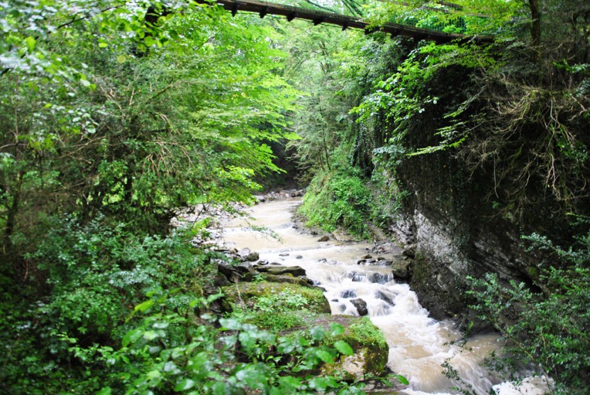 Если спуститься вниз по дороге от конечной остановки автобуса, то можно попасть на главную достопримечательность — водопад Райское наслаждение. От указателя нужно пройтись около 400 метров и попадаем на развлекательный комплекс построенный на берегу реки.