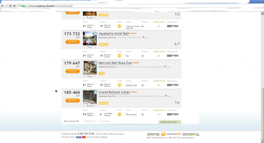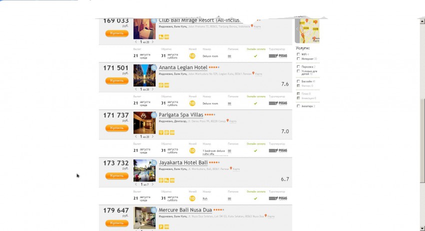 Решил зайти на их сайт, набрал Индонезия Бали Кута, отель 4 звезды, дабл и что я вижу.