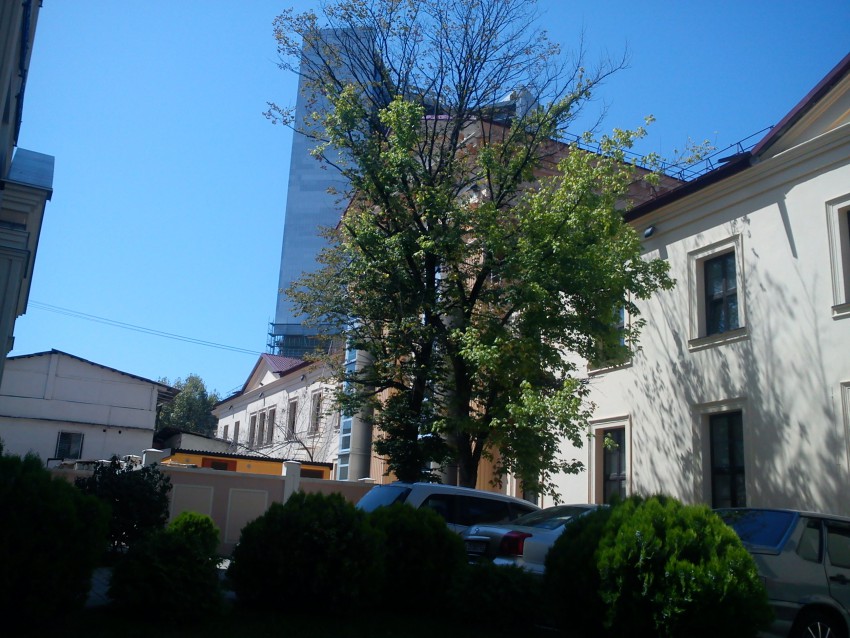 Верхняя часть глициниевой аллеи, как то не получилось продолжить стиль, и балконы висят прям над тротуаром.
