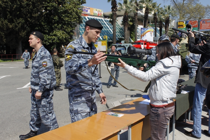 Выставка вооружения сочинского ОМОНа на 1 Городском массовом физкультурном празднике "Дети против наркотиков".