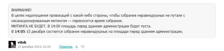 В целях недопущения провокаций с какой-либо стороны, чтобы собрание неравнодушных не путали с несанкционированным митингом — переносится время собрания.