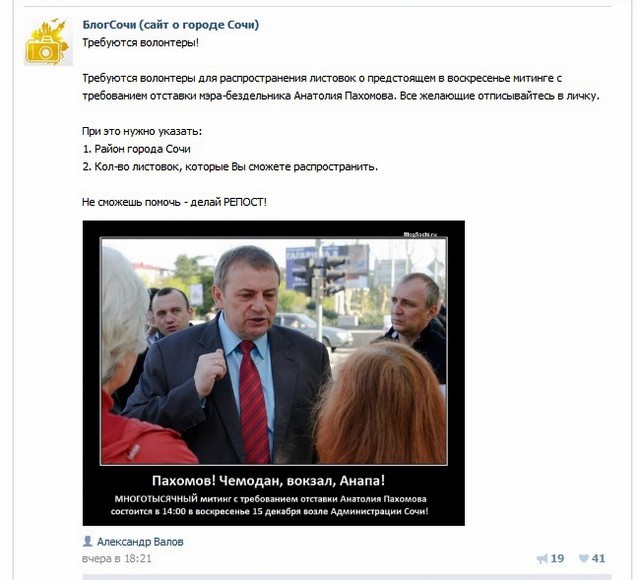 Одно непонятно по тексту: Валов постоянно уклоняется от судебного преследования в Сочи, ссылаясь на регистрацию далеко-далеко от нас. Значит, он на «МНОГОТЫСЯЧНОМ митинге» покажет полицейским паспорт, где написано, что является жителем Слюдянки в далекой Сибири.
