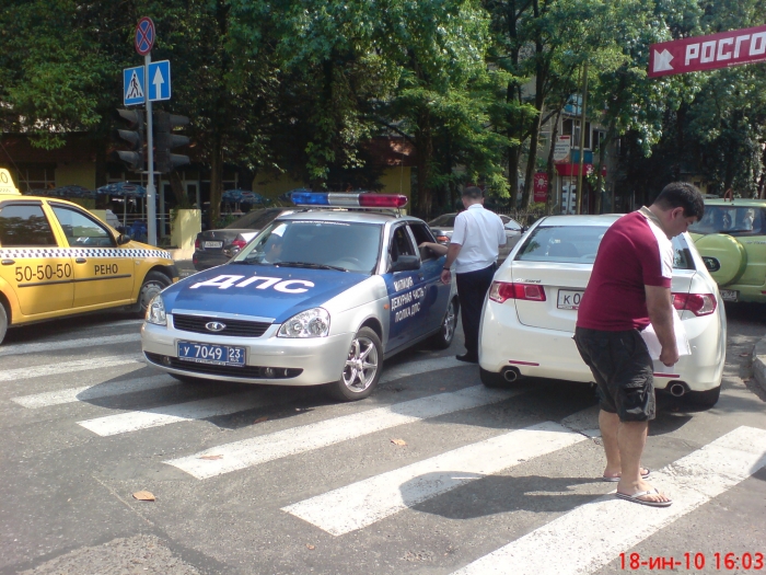Все те из нас, кто является водителем личного или служебного авто или просто ходит по улицам нашего города зачастую могут увидеть ситуации схожие с фото ниже. Я прекрасно понимаю, что даже сотрудникам ГИБДД трудно найти место в Сочи для того, что-бы поставить служебный автомобиль. Но это не повод нарушать ПДД теми, кто для нас должен быть примером, зачастую возникают ситуации, когда они просто хамят. Если у кого-то есть фото или видео подобных нарушений- выкладывайте и возможно нам удастся привлечь внимание к этой проблеме. Нас пытаются оштрафовать люди сами нарушающие правила дорожного движения! Отдельное ОГРОМНОЕ СПАСИБО пользователям nastasiya, Diver, dragon за фото выложенные в топике об изменениях в схеме движения и перенесенных мною сюда, в отдельную тему.